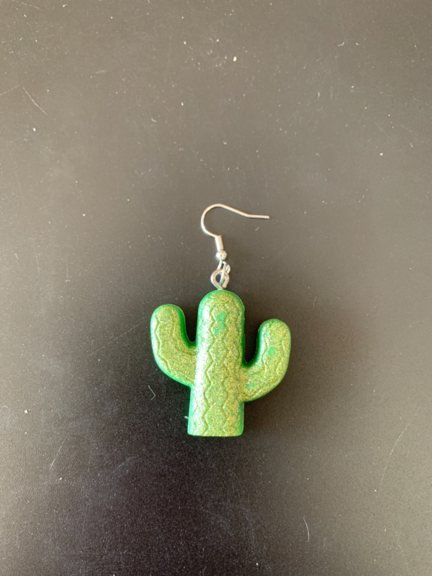 Mono boucle d’oreille en forme de cactus.