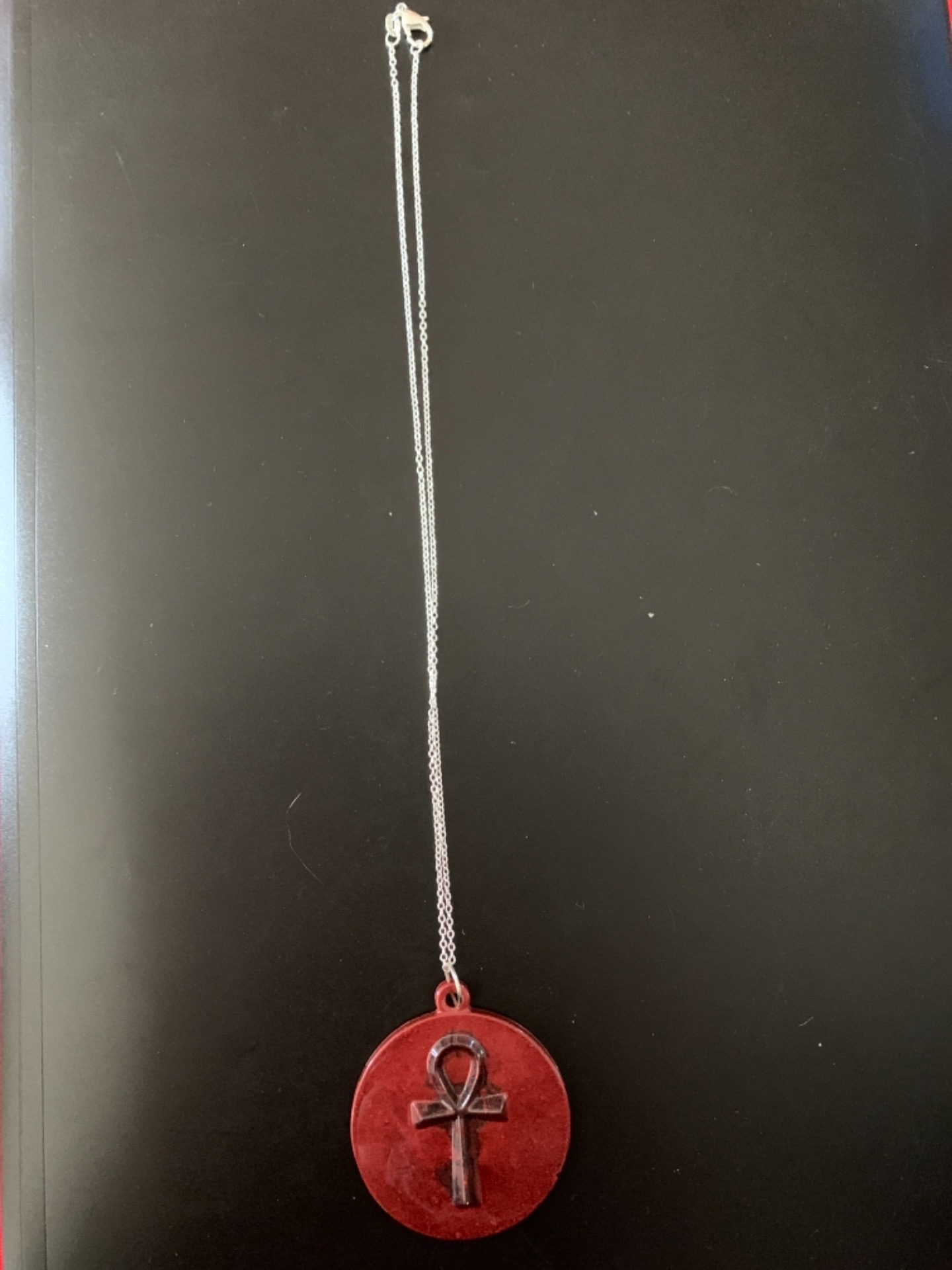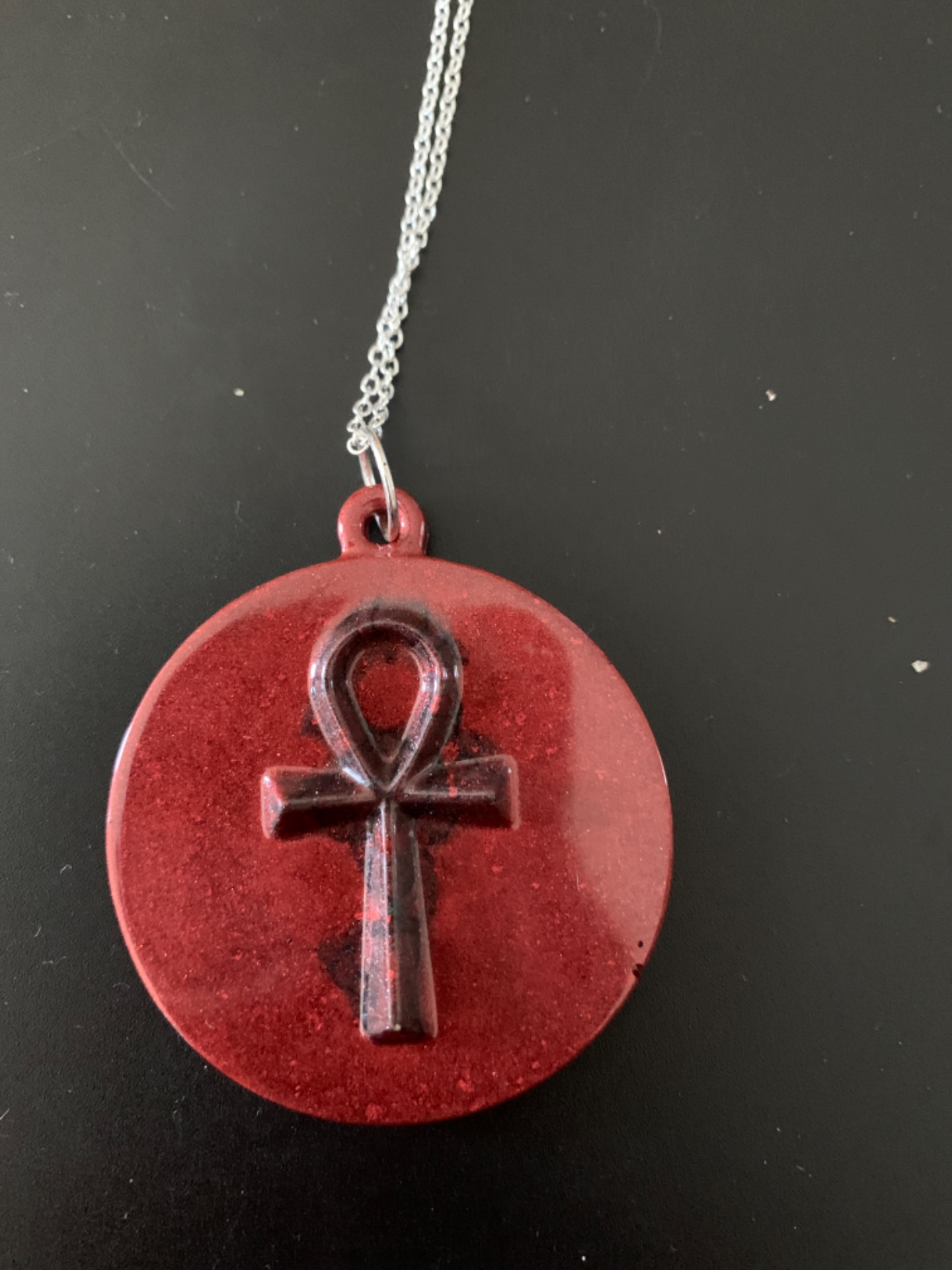 Collier avec une chaîne (acier) et un pendentif croix à l’intérieur d’un rond.La chaîne est disponible en 45cm (photo), 50cm, 55cm ainsi que 60cm.