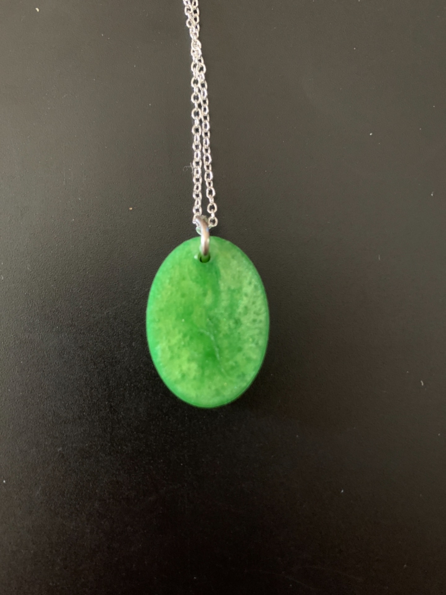 Collier avec une chaîne (acier) et un pendentif ovale vert.La chaîne est disponible en 45cm (photo), 50cm, 55cm ainsi que 60cm.