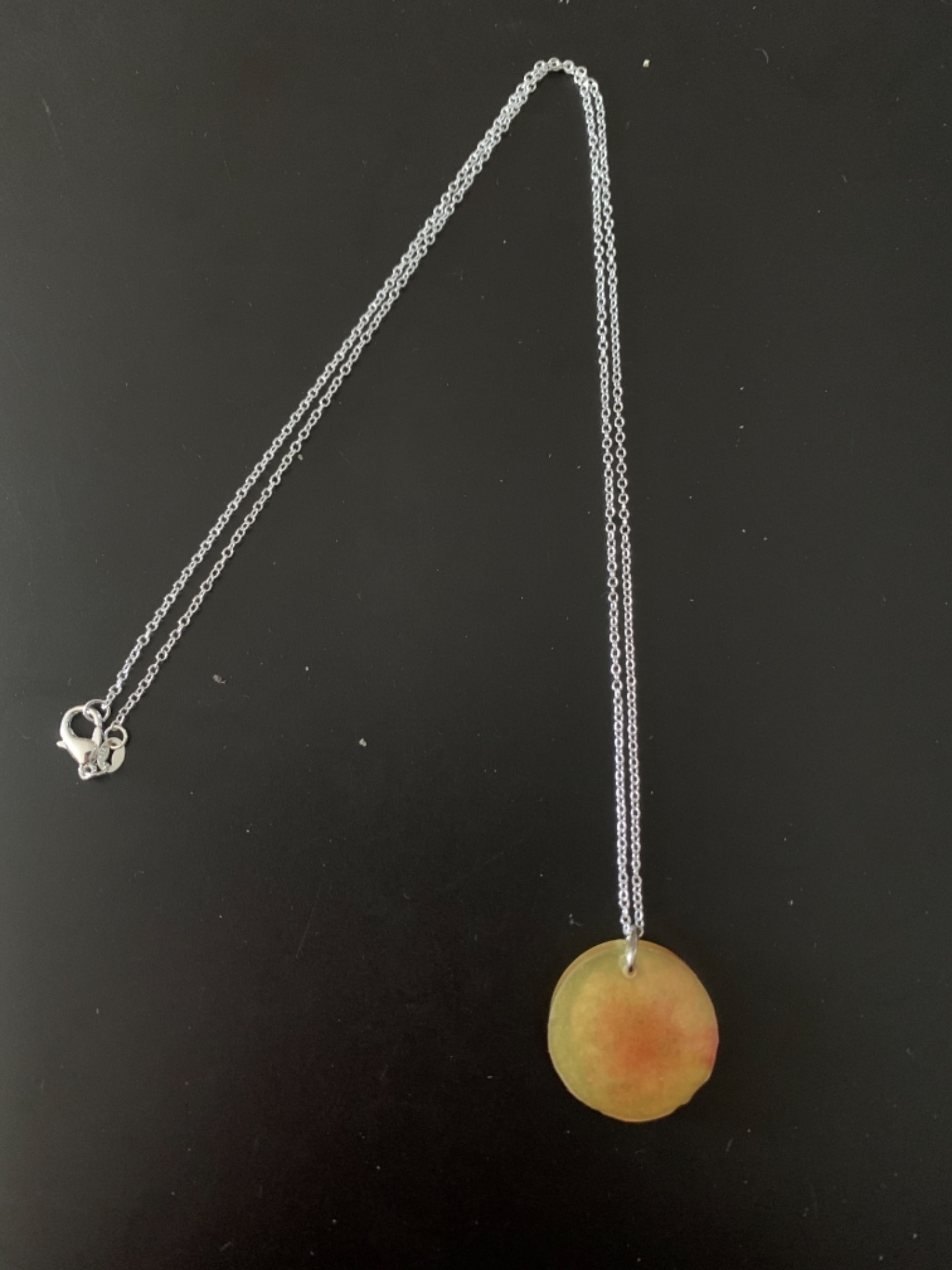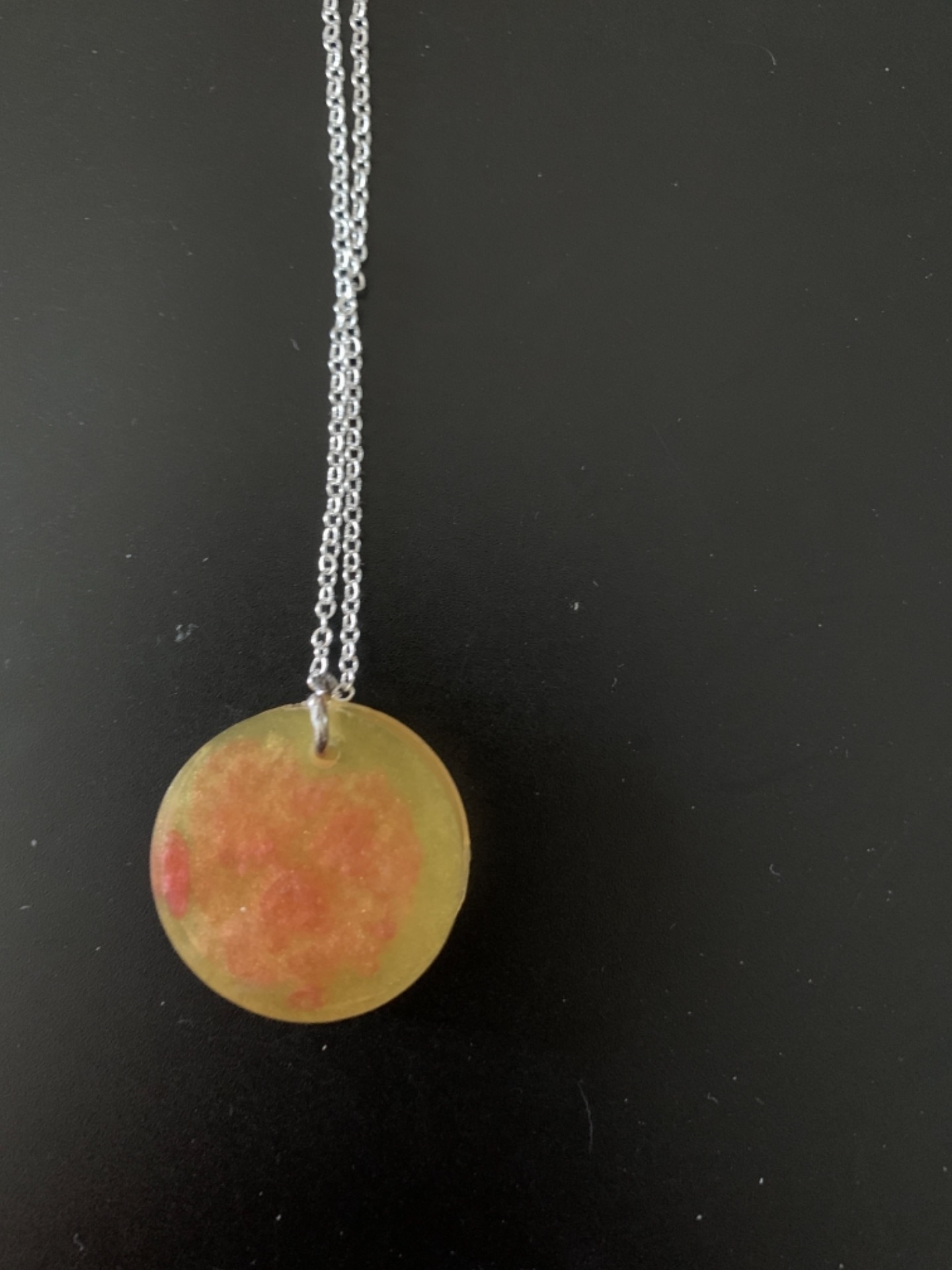 Collier avec une chaîne (acier) et un pendentif rond jaune et rouge.Chaîne disponible en 45cm, 50cm, 55cm ainsi que 60cm (photo).